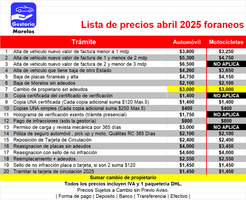 Alta de placas en Morelos